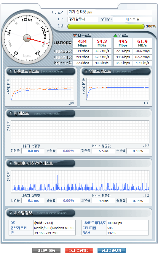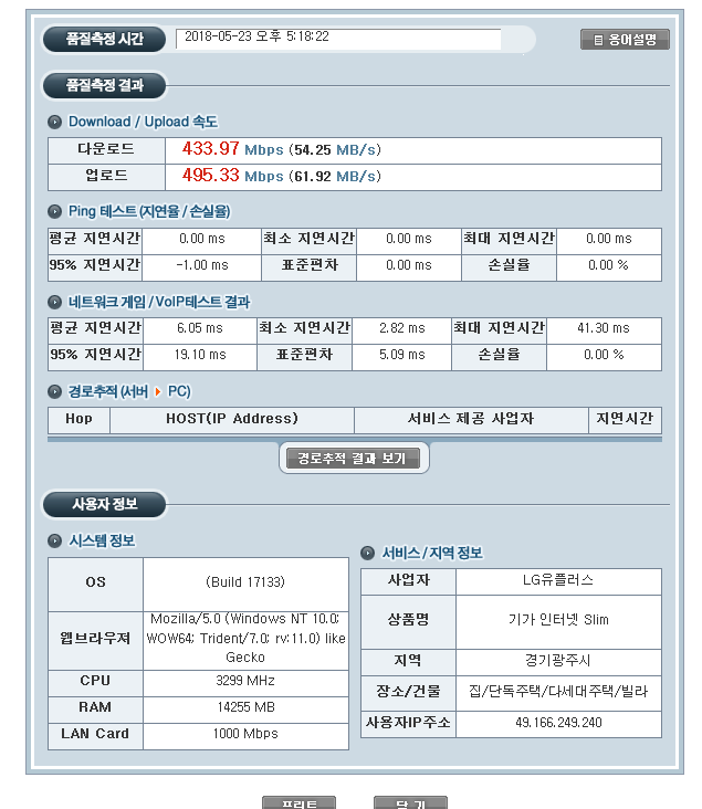 인터넷 속도측정 도구를 이용하시고요~