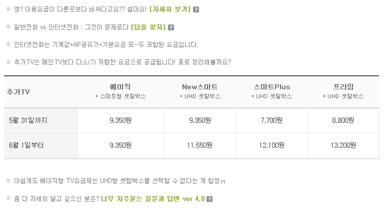3) 인터넷 품질 걱정이 없고+UHD셋탑을 택하신다면 중간 이상은 갑니다ㅎㅎ