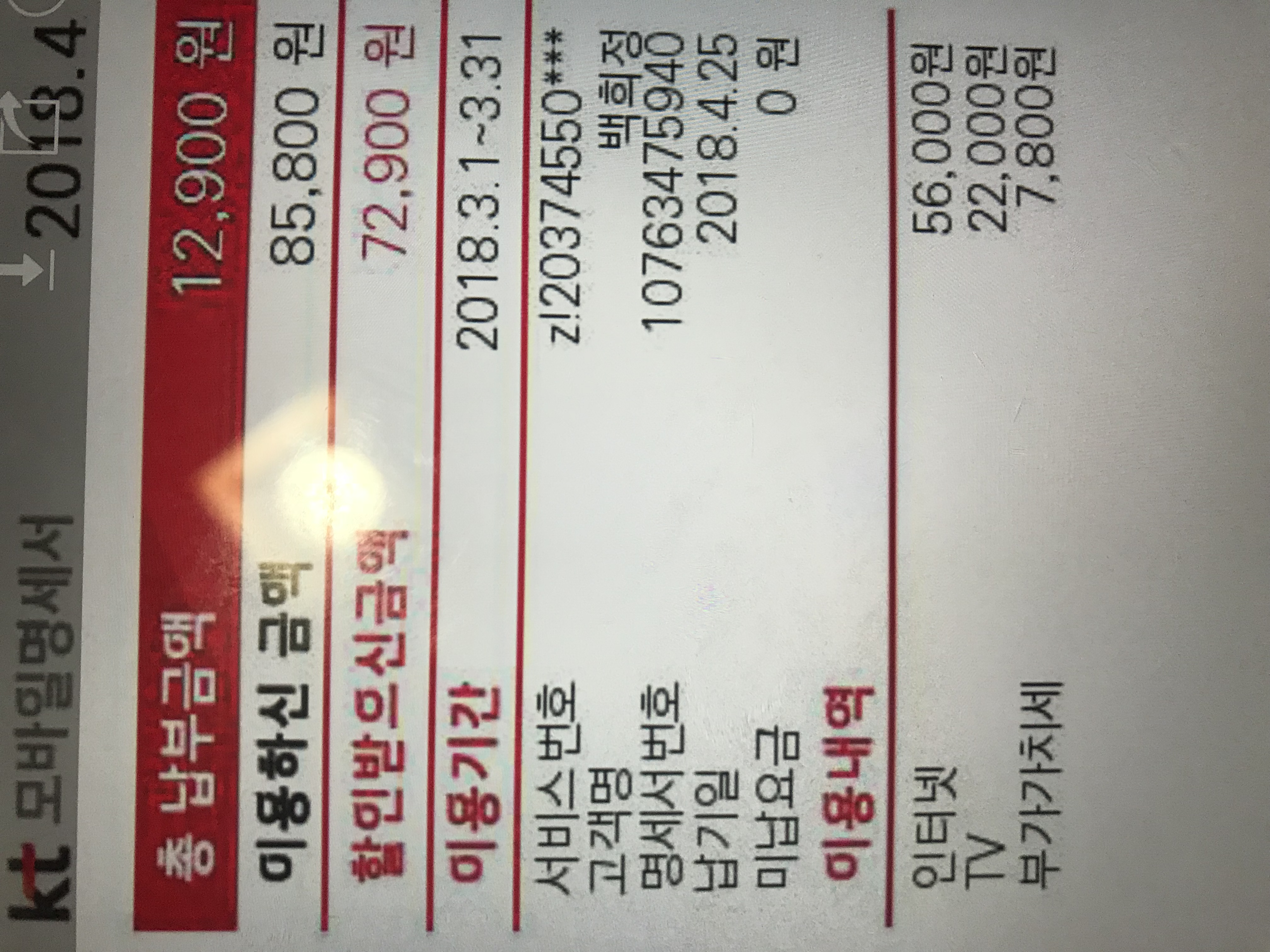 즉, KT에서 폰결합 할인을 왕창 받고 계시고,