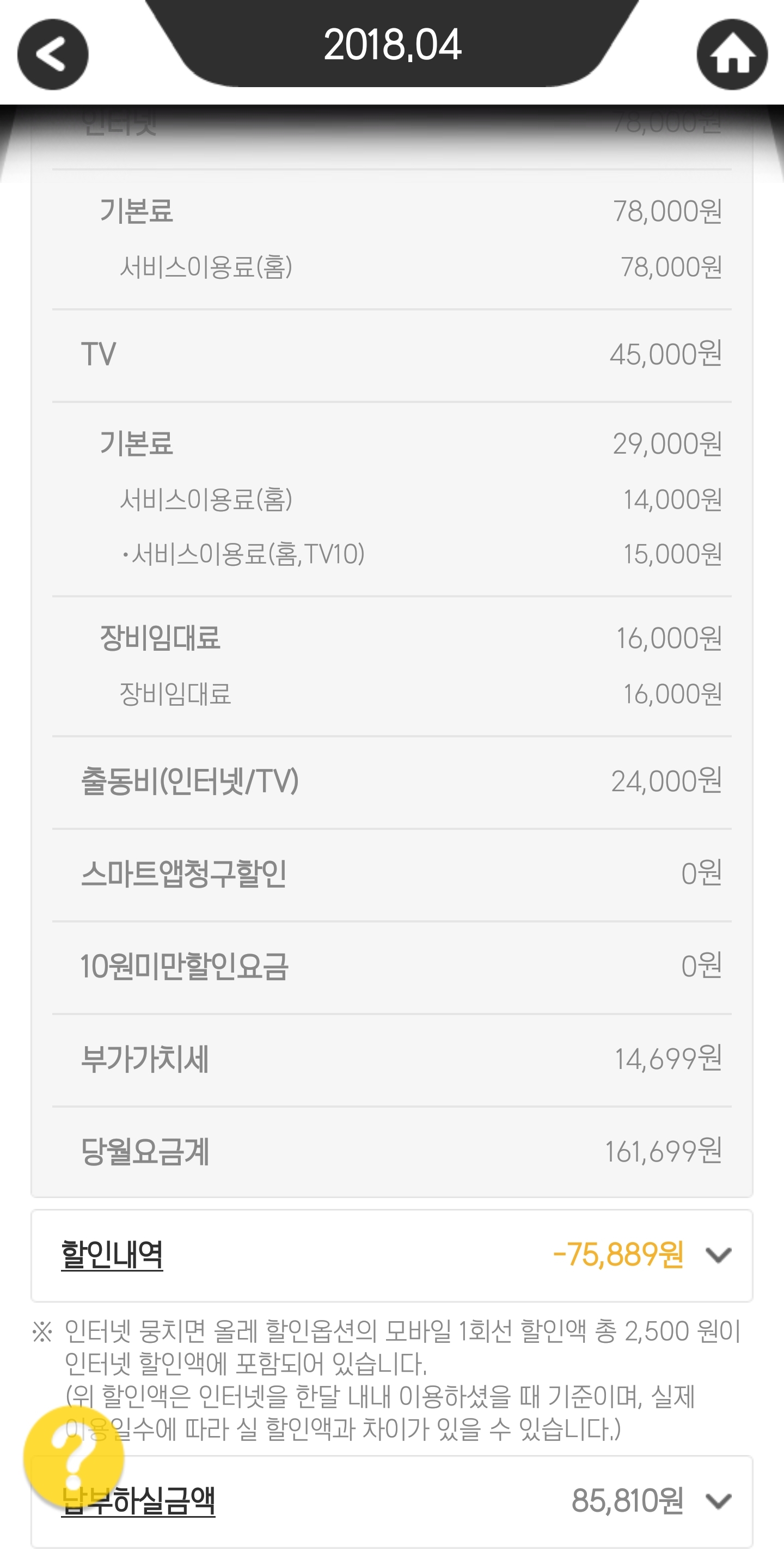 2. 500메가+TV 요금이 매월 5만원~8만원 정도가 나온다는 말씀이시지요? ㄷㄷ
