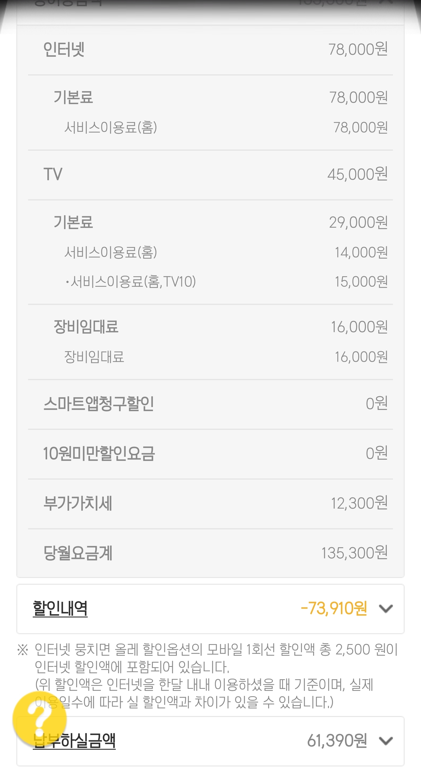 다른 사람들은 월요금이 4만원 초반대가 나온다는데