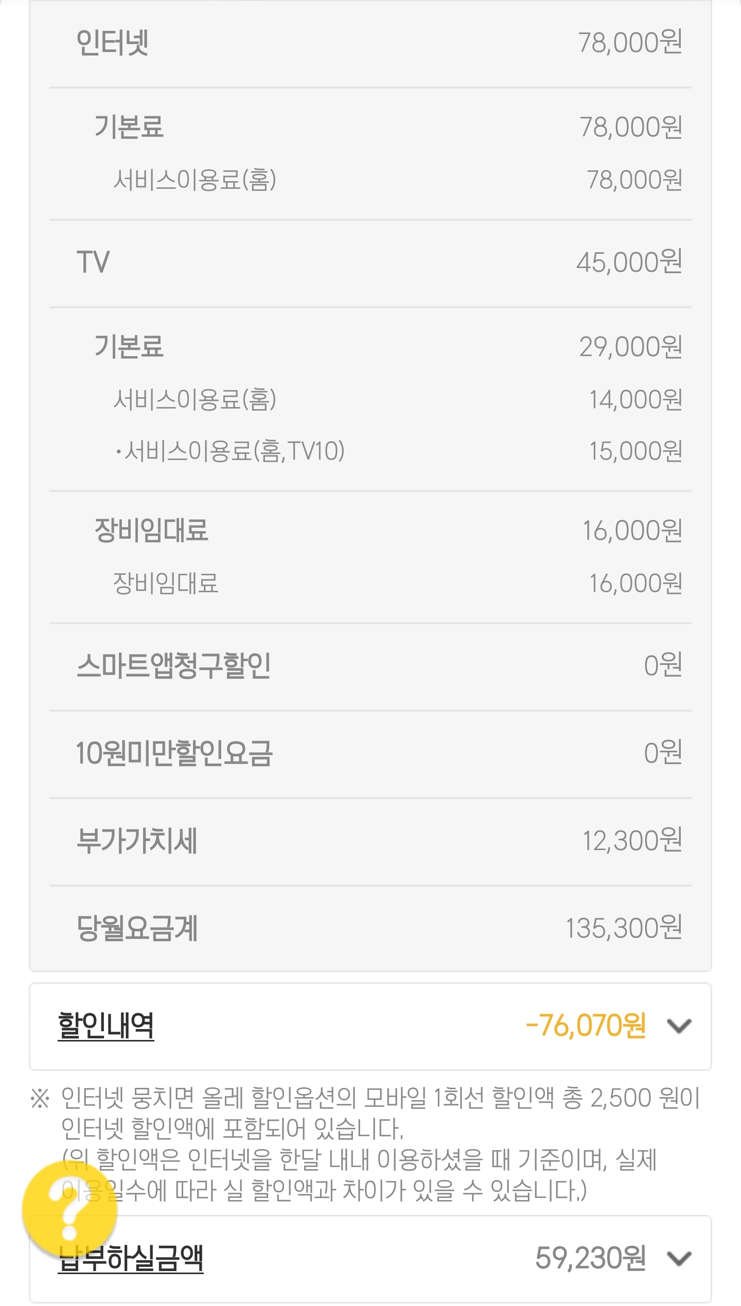인터넷+핸드폰 결합할인에 패밀리 할인까지 받고 계시니