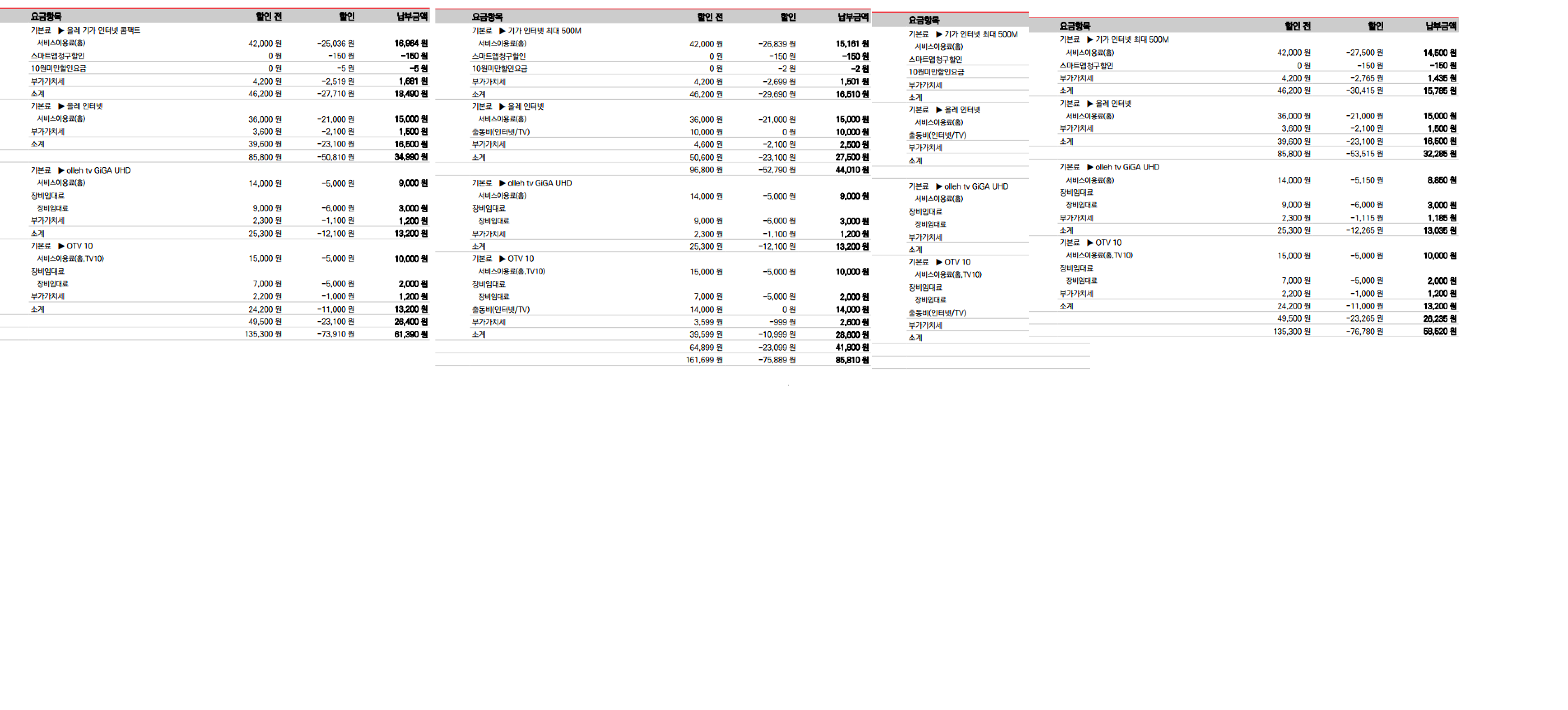 기가 슬림 요금과 uhd iptv 이용 중이고 결합해서 통합 요금이 나옵니다.