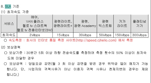 CJ 케이블의 경우, 통신사 약관을 살펴보니
