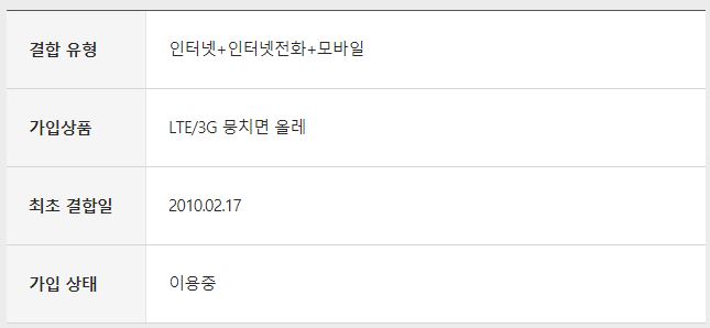 현재 인터넷+인터넷전화+모바일 결합으로 LTE/3G뭉치면 올레에 결합되어 있습니다.