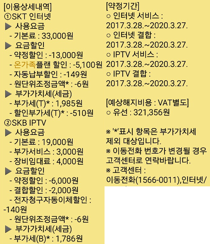1) SK인터넷과 IPTV는 할인을 적용받아 이용중이시며