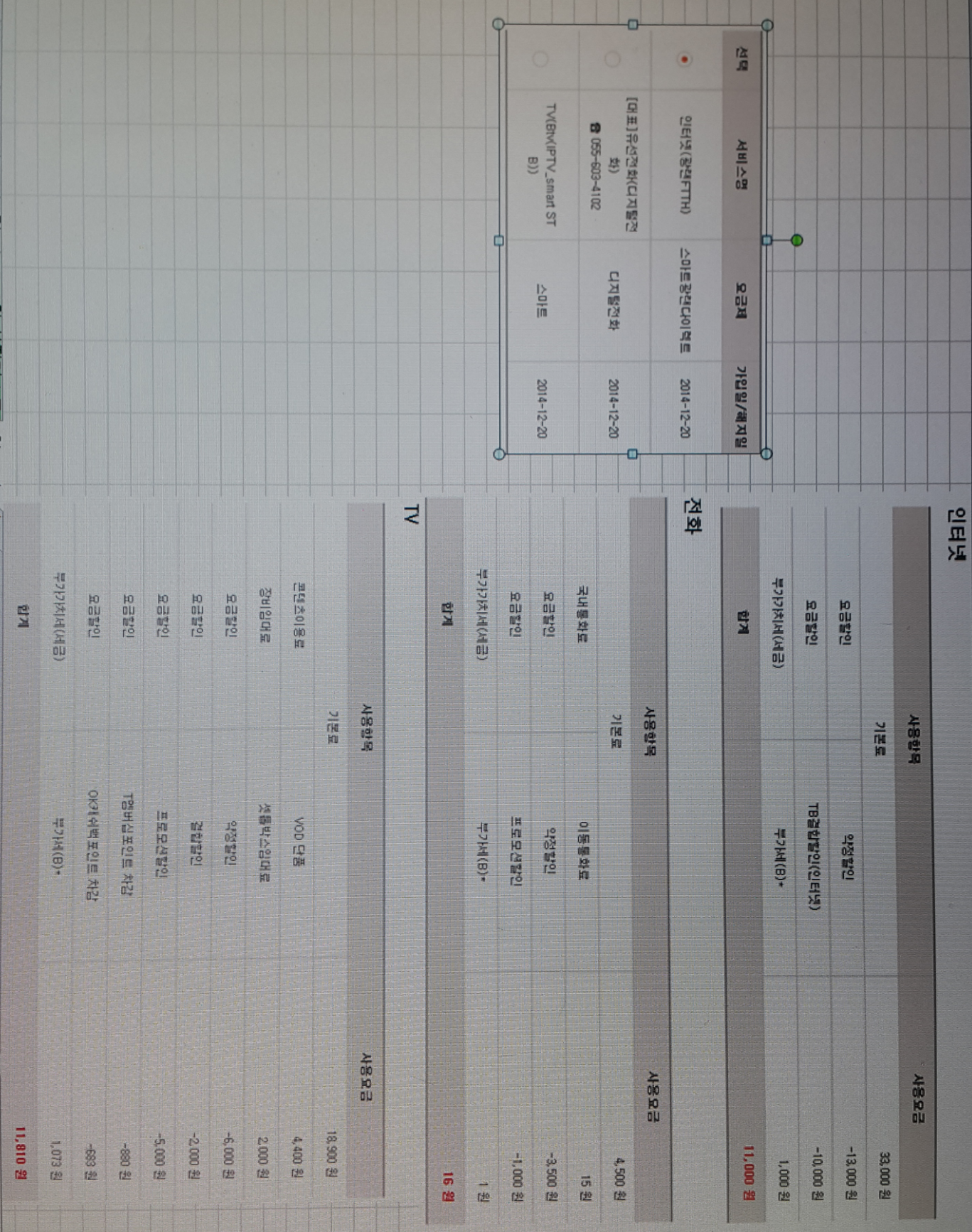첨부사진 보시면 인터넷이랑 전화, tv 사용중입니다.