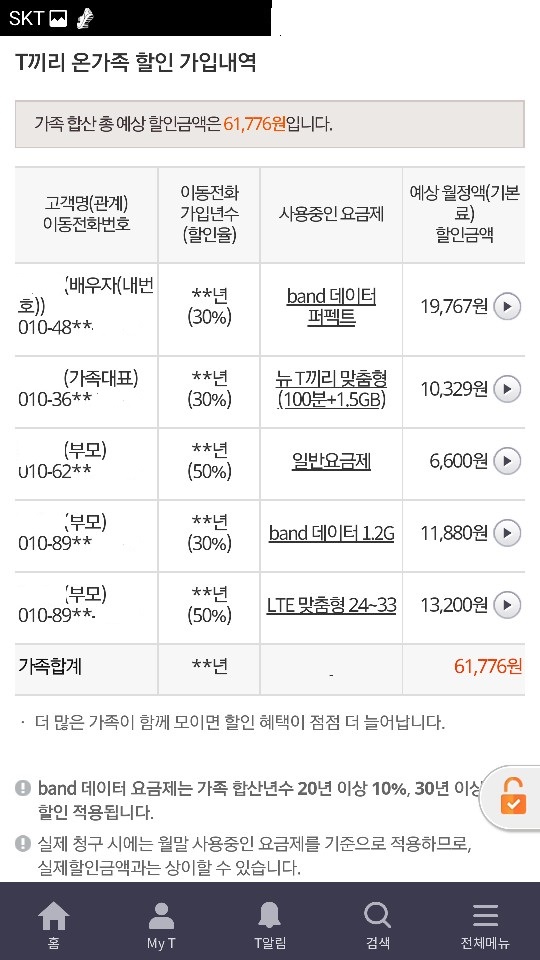 온가족할인으로 요금할인을 팍팍 받을 수 있으니깐요 :)