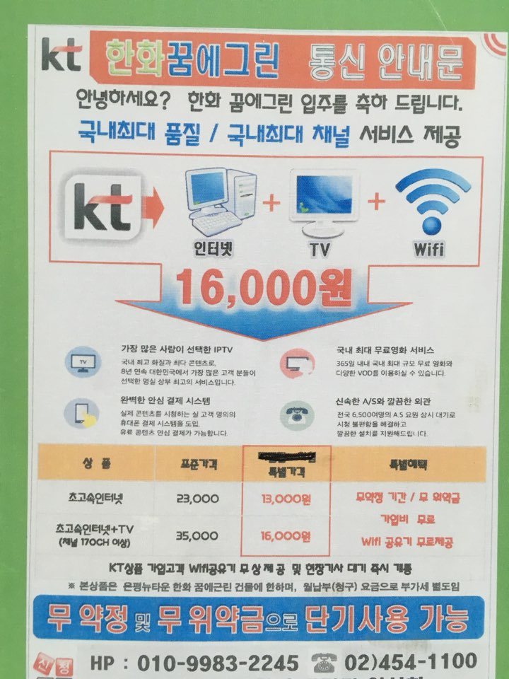 전단지를 보고 인터넷과 TV를 신청했거든요?