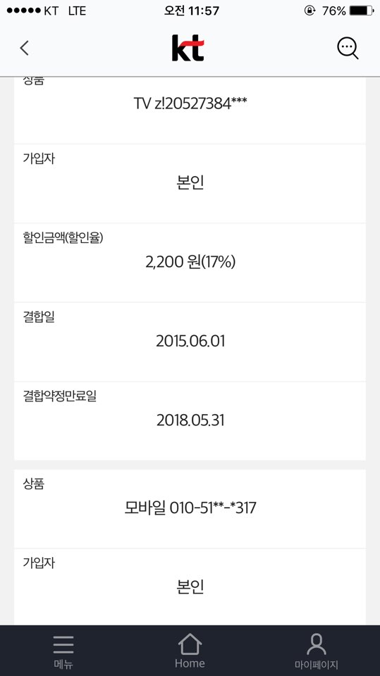 저는 kt 에서 폰 + tv + 인터넷 쓰고 있습니다. (저만)