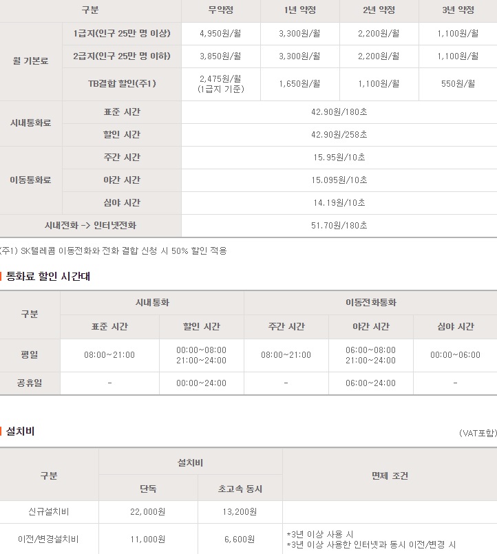 매장 말고 댁에 SK일반전화를 일단 설치받고