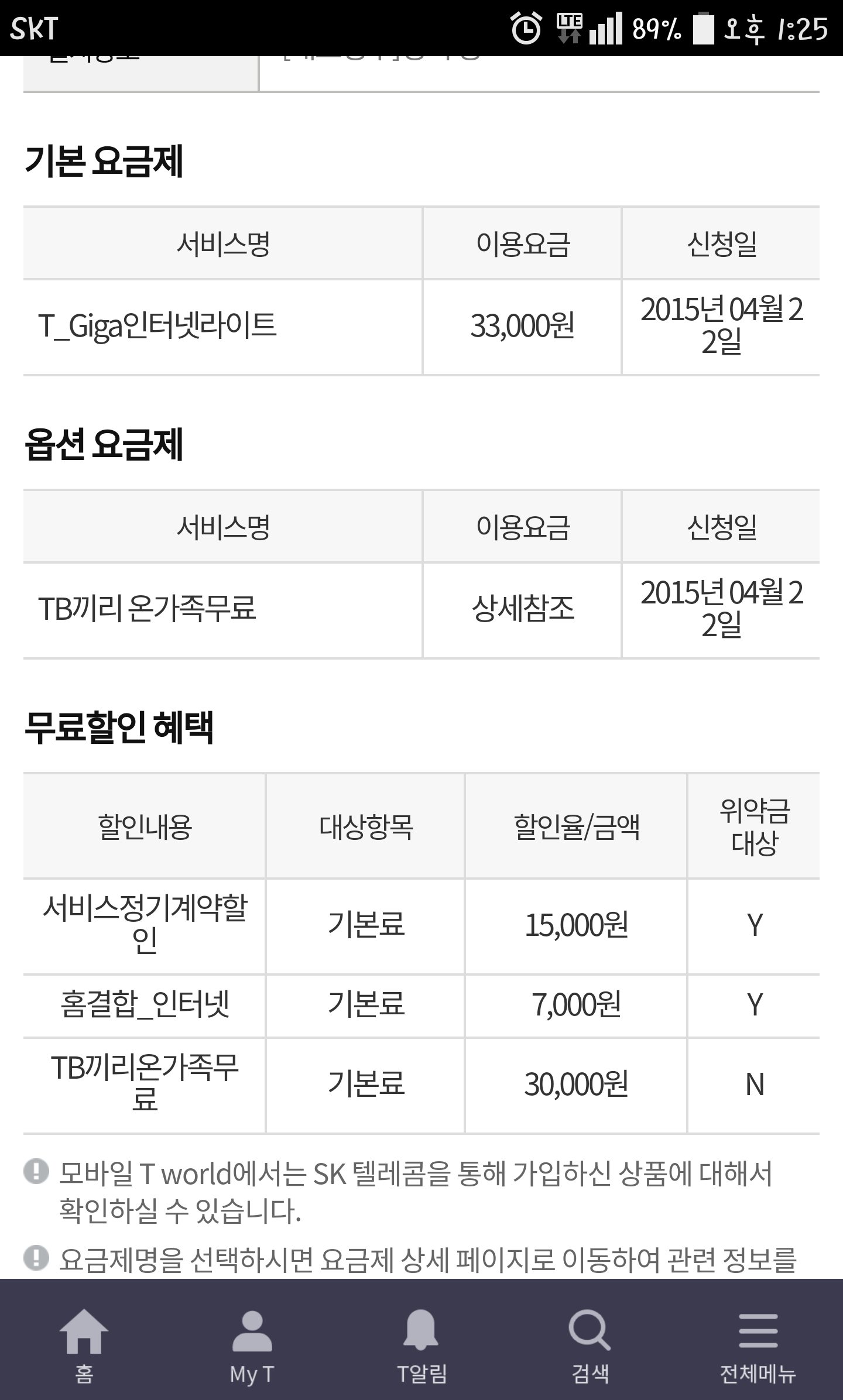 가족 다 skt사용중이라 가족결합으로 요금 할인받았던걸로 아는데