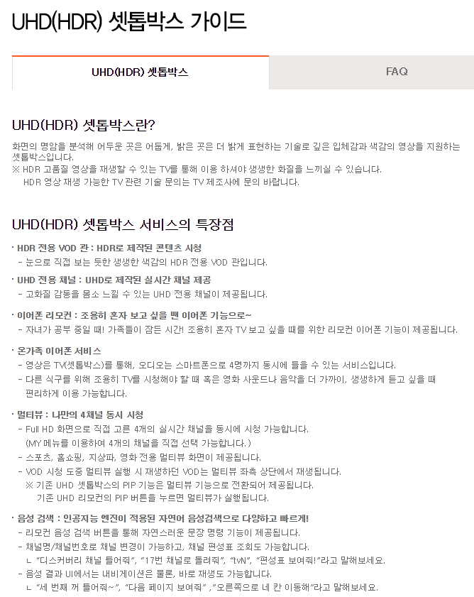 UHD셋탑 (UH400). 혹은 HDR셋탑으로 변경하시더라도