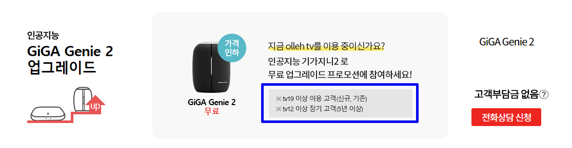 기가지니2를 받는 즉시, 강제로 2년 약정이 시작되는 셈이거든요;;;