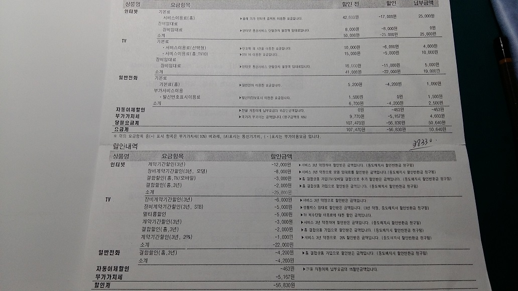 (인터넷 22,000원+ TV 13,200원 + 전화 13,200원 + 번호이동 수수료 2,000원)