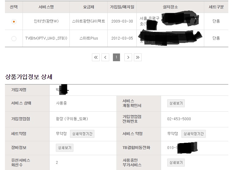 현재 sk브로드밴드에서 인터넷과 티비를 사용중에 있습니다. (남편 휴대폰 연결되어있음.)