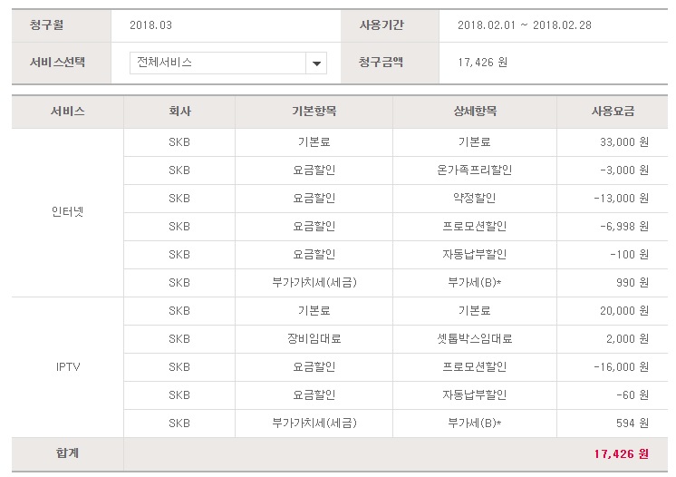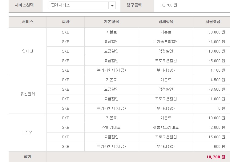 SK 본사 상담원분이 인터넷+TV요금만 알려드릴 수도 있고,