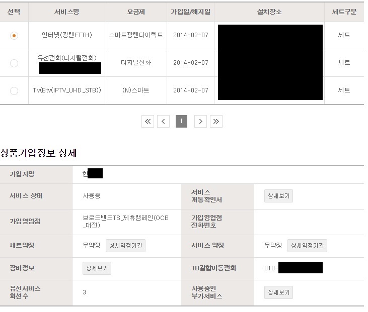 3) 친정에서 사용중인 인터넷+tv 상품 및 요금은 아래 사진으로 첨부하겠습니다.