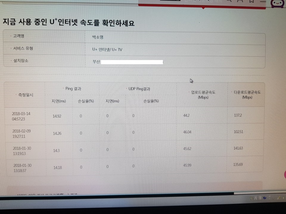 설치할때도 한달동안 100을 못넘겨서 해결방안도 못찾고 있다가 뭐 유플러스에서 속도 상한치인가 그걸 묶어놔서