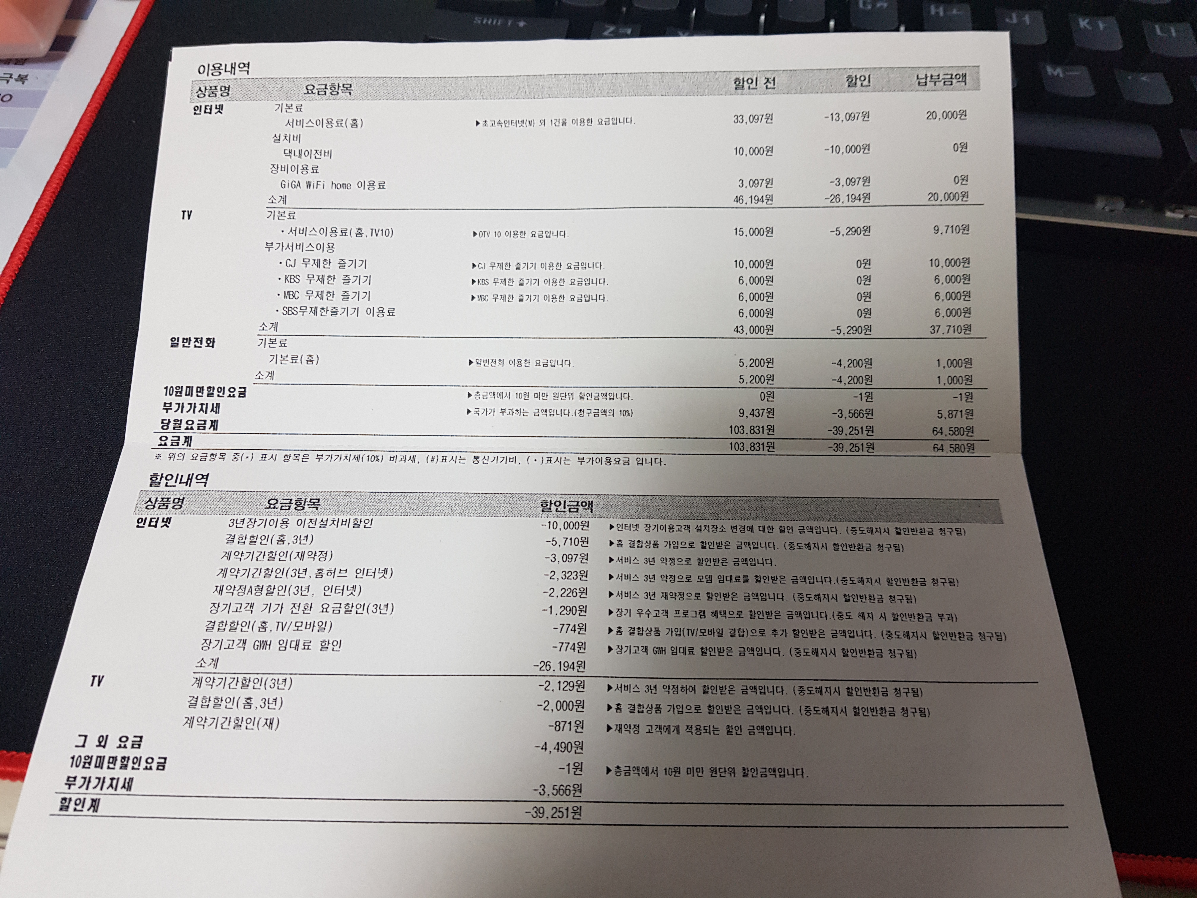이 중에서 TV 부가서비스 이용료만 30,800원인 셈입니다 ㄷㄷㄷ