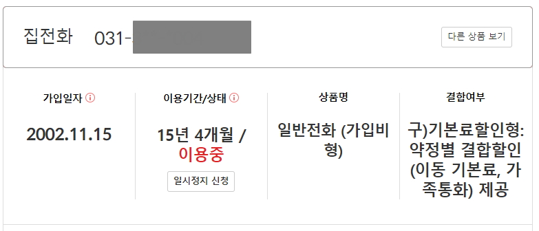그..그나저나 집전화 상품을 정말 오랫동안 사용해오셨네요ㄷㄷㄷㄷ