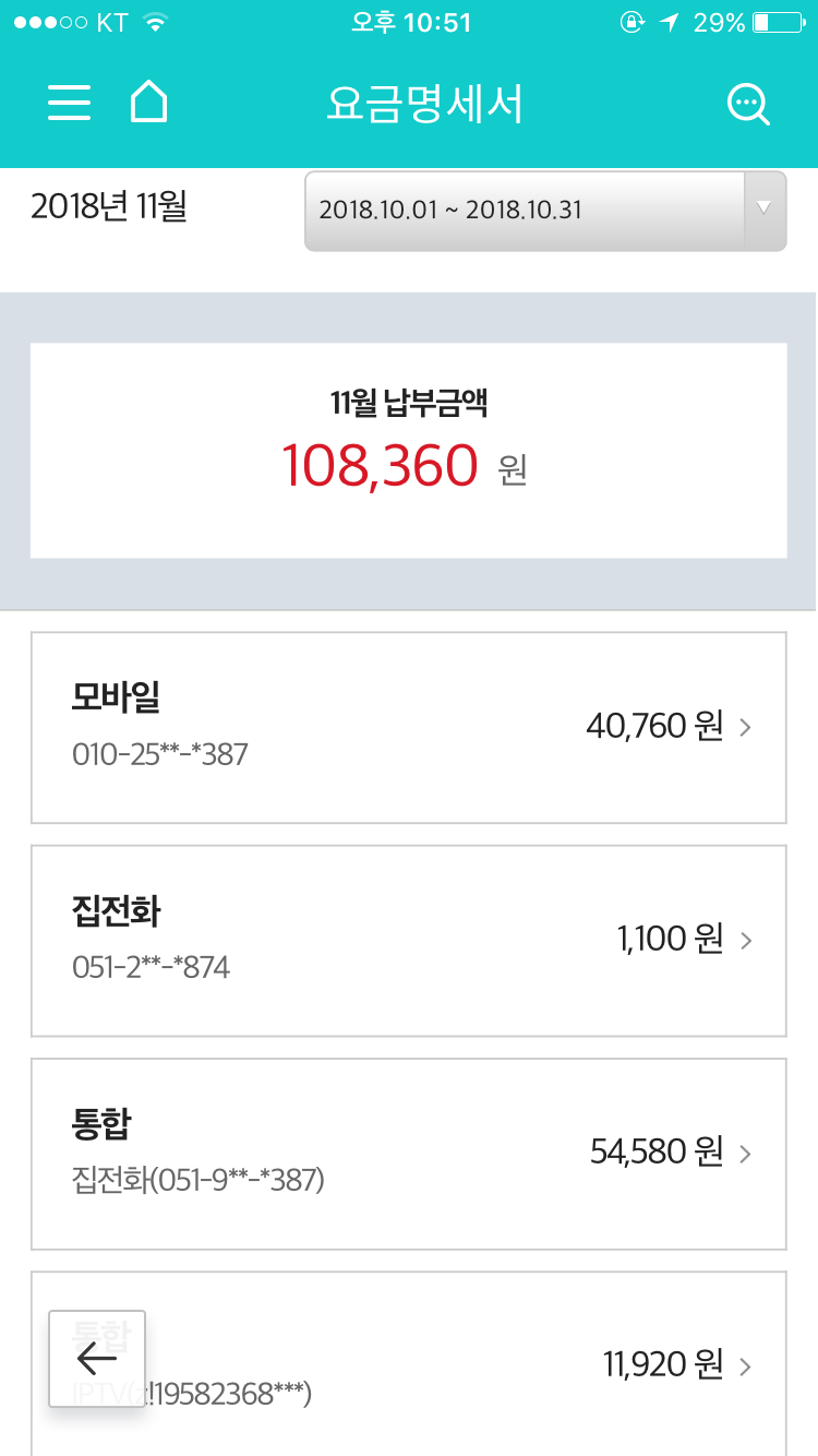나머지 금액이 (아마 IPTV 부분) 청구된 것일테구요~~ㅎㅎ