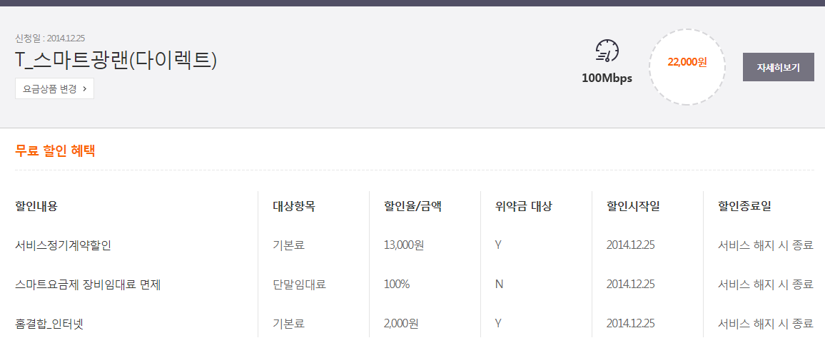 고가요금제를 사용하셔도 1회선 결합만으로는