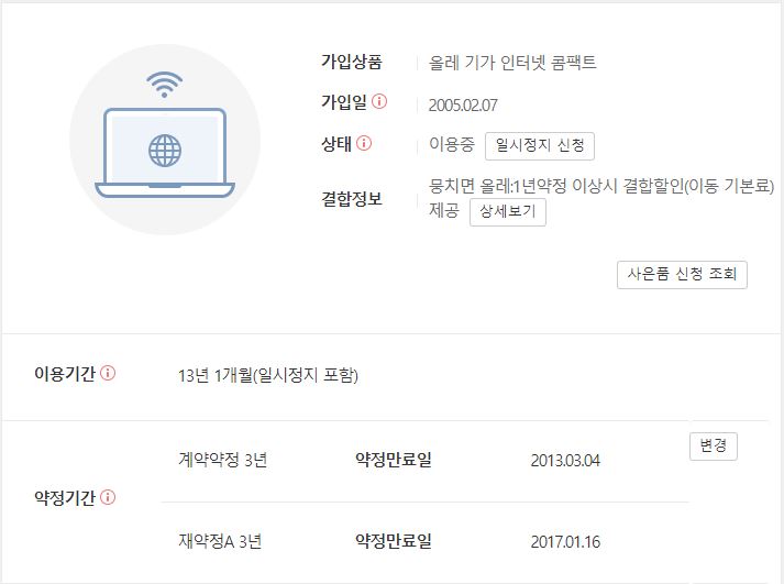 KT인터넷, IPTV, 전화 약정은 이미 만료되었군요?