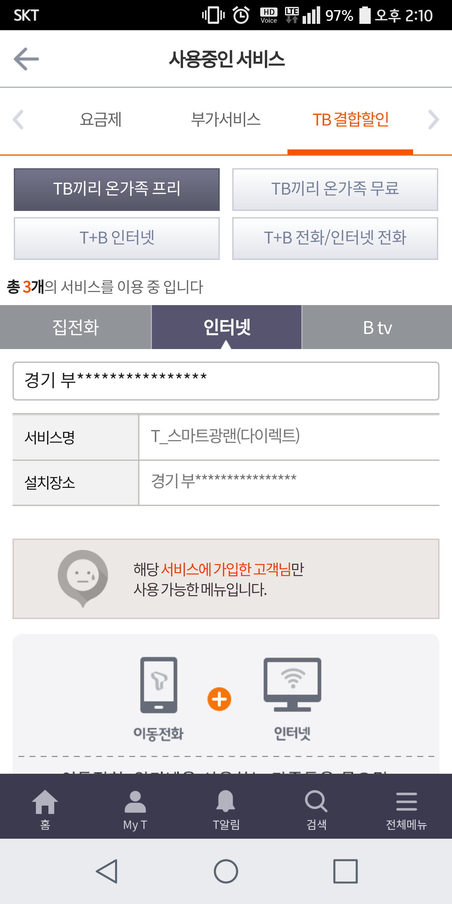 온가족프리와 온가족할인은 같은 SKB이기 때문에