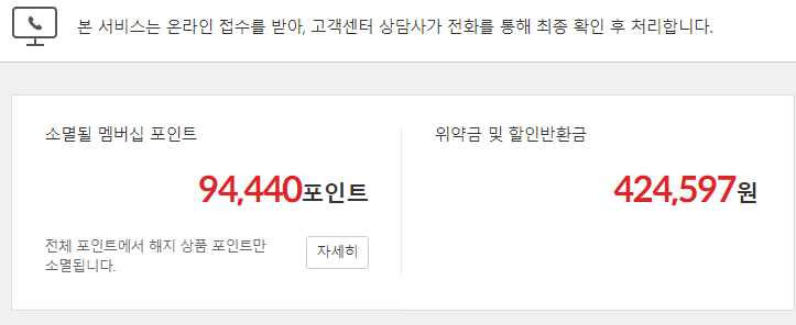 발생하는 위약금(8만원가량)은 피하지 못합니다;;