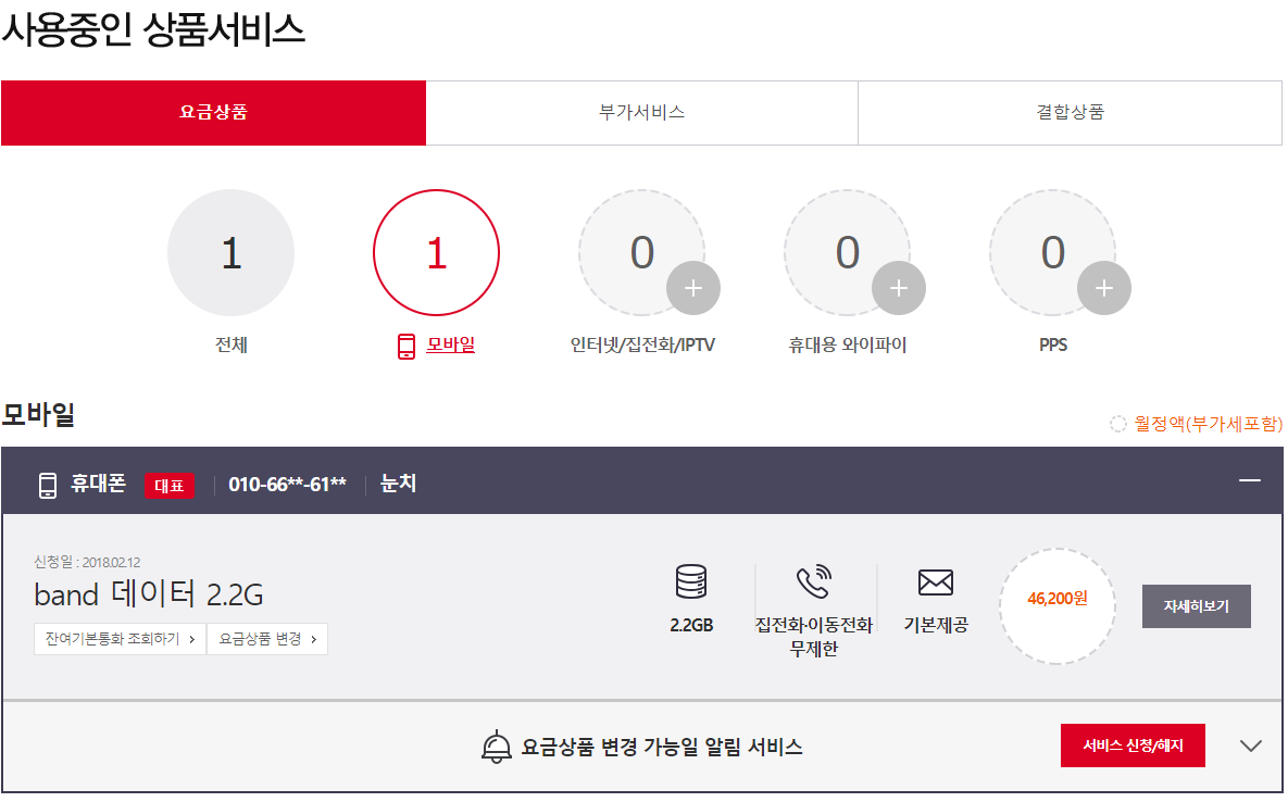 본인: KT 순 광대역 안심무한 51(LTE)