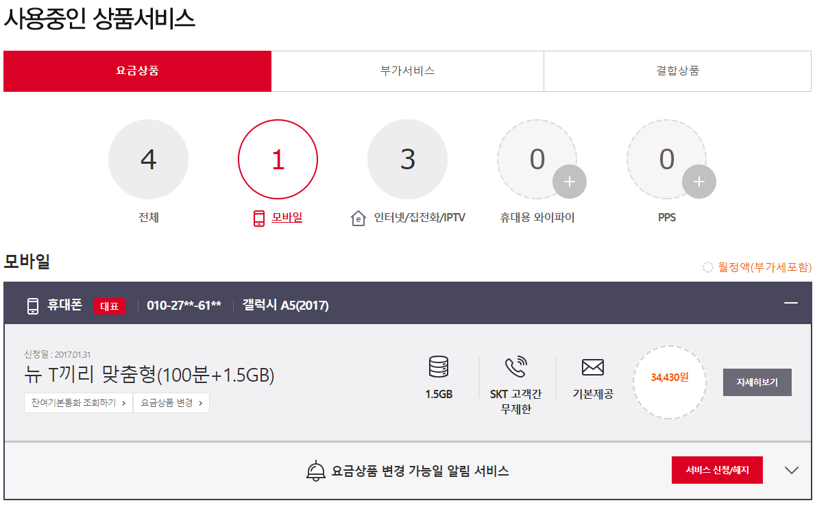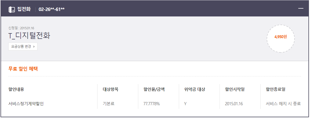 * 작년 5월에 어머님께서 휴대폰을 변경하시며 홈결합 할인이 갱신 되었군요..!