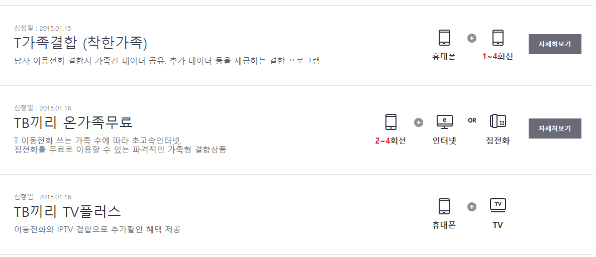 자회선에 대략 30% 할인을 받으실 수 있는 결합 서비스입니다 ^^
