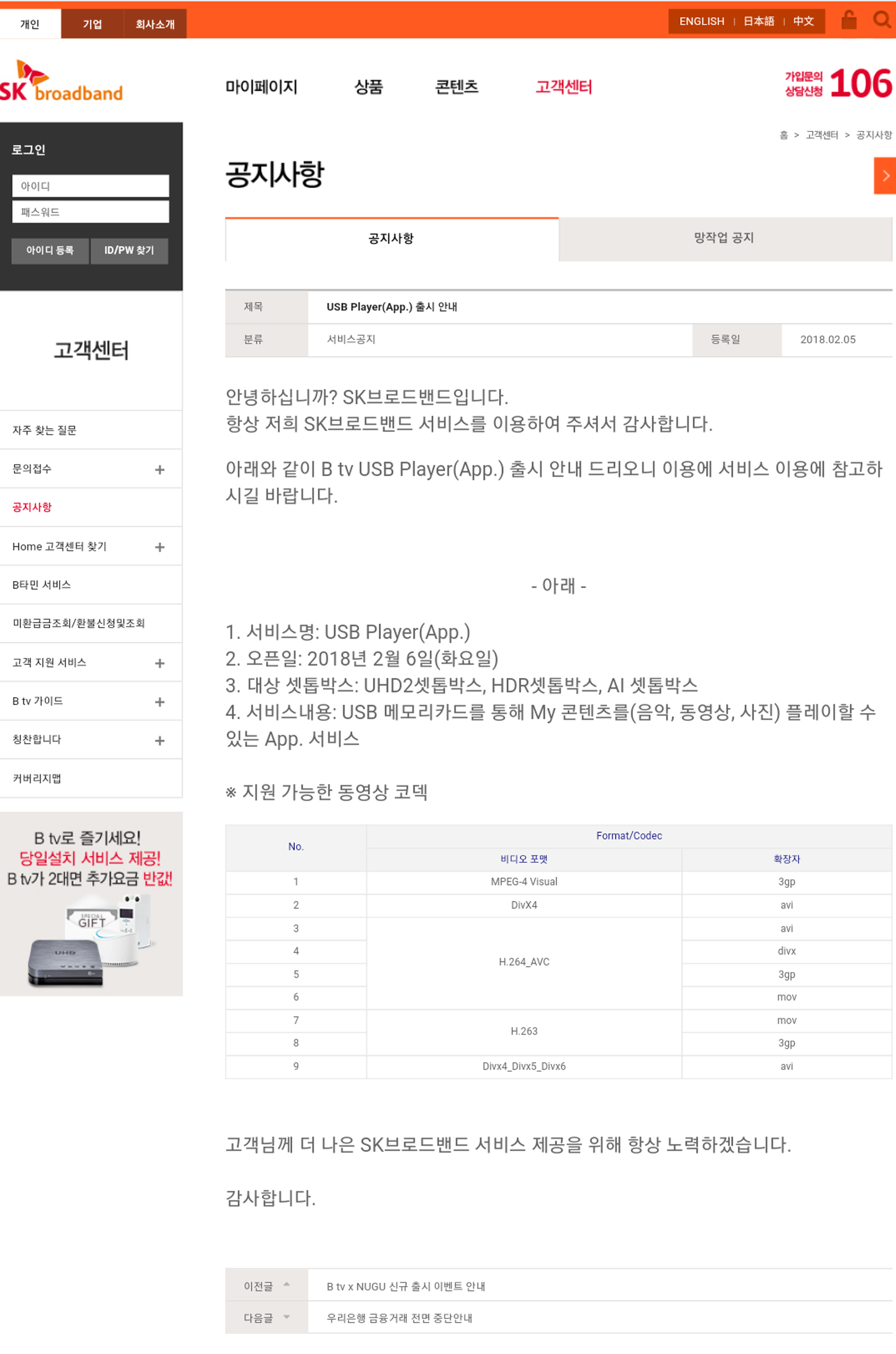 SK BTV USB 지원된디고히네요 ㅎㅎ