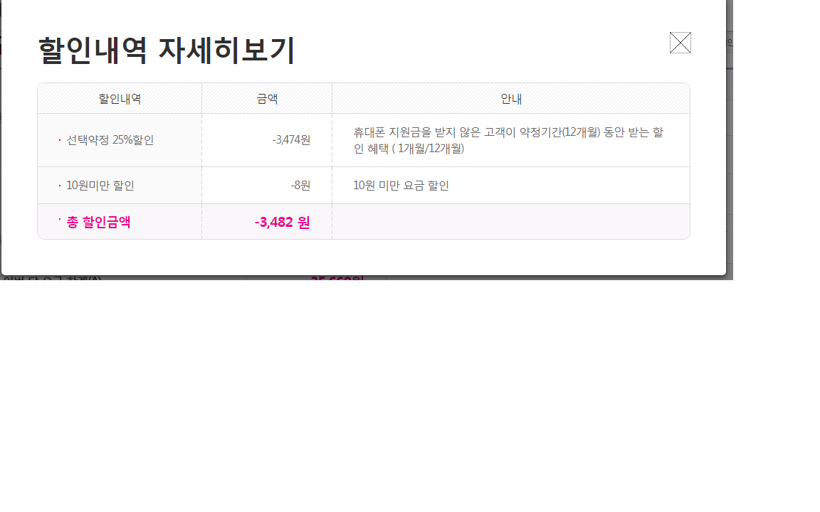 상세할인 내역입니다. 홈페이지상에서 며칠전 해지 신청을 해놨는데. 아무런 연락이 없어서
