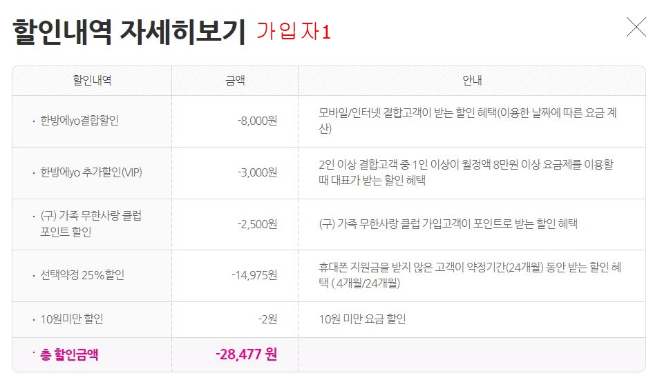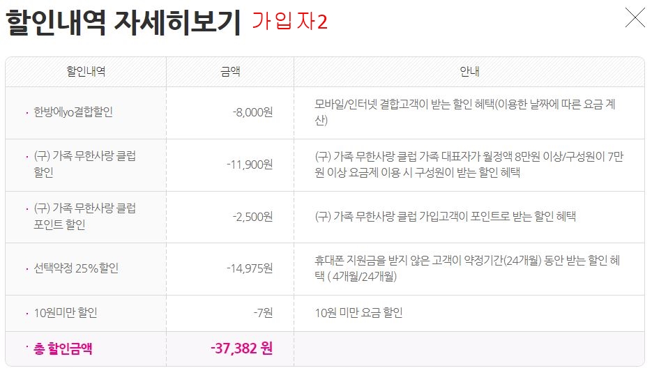스마트폰은 부부 2명이서 인터넷과 같이 결합했고, 각각 LGU+ 데이터스페셜A 요금제 사용 중입니다.