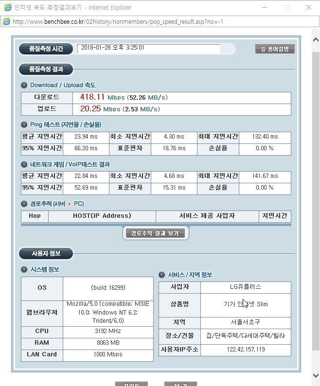 *속도측정 사이트 : http://www.benchbee.co.kr/