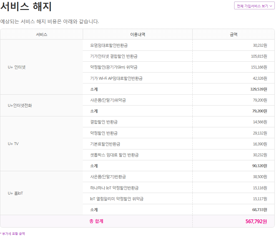 (물론, LG본사 고객센터로 위약금 조회 시, 상담원마다 다르게 말하는 경우가 종종 있긴 합니다^^;)