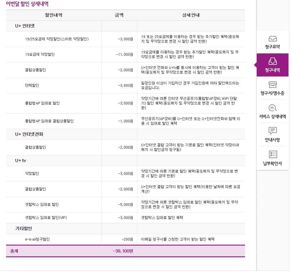 넋두리) u+은  100M 인터넷에서  500M로 변경하는데  1만원 가까이 월 사용요금 인상이 되는것이 잘 이해가 되지 않습니다.  인터넷 단품일때에는 1만원 차이가 나지만, TV랑 결합할인 하면  5천원정도 차이던데,( 단체할인 3,400 원이 있는데,  100M일때 단체할인 부분이 500M로 가면서 사라진것인지) 우선은 이해가 되지 않네요.