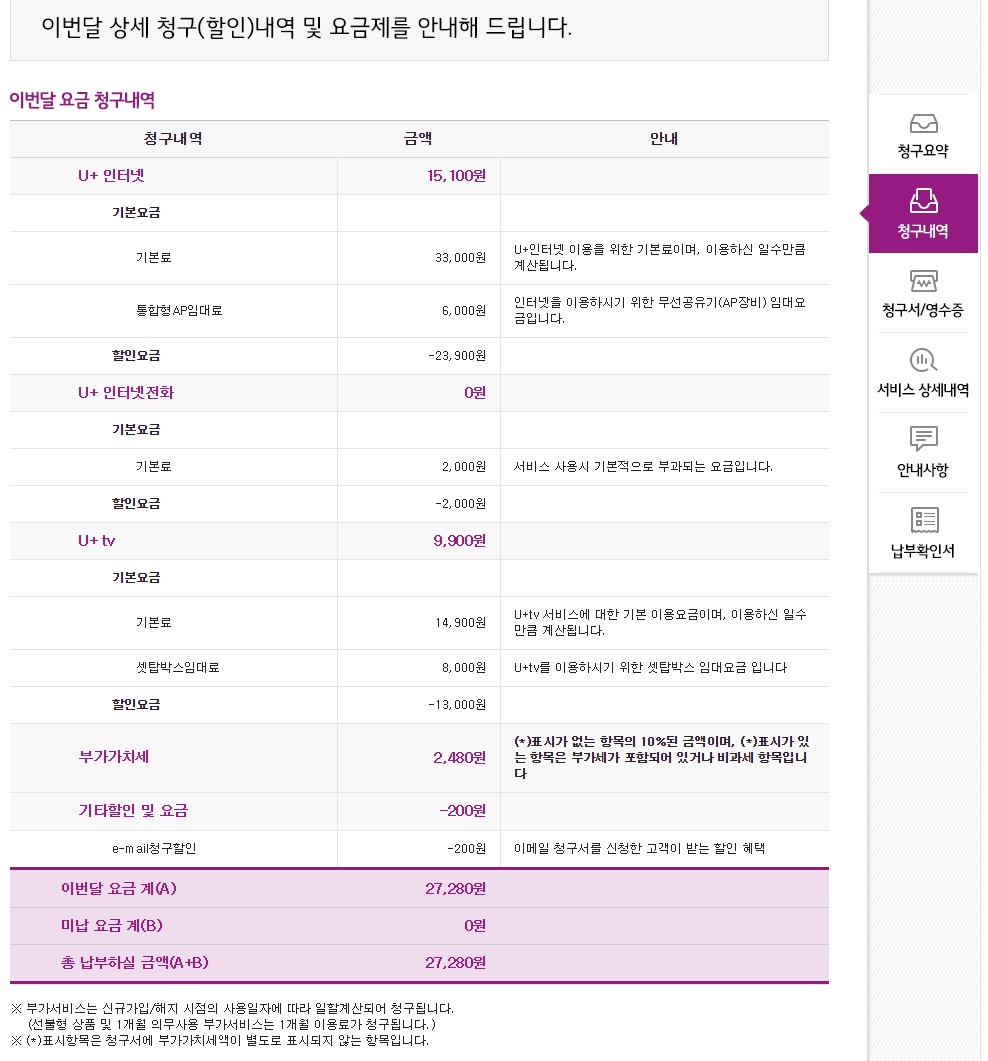 현재 U+ 에서  인터넷+TV+전화 를  27280원(VAT포함)에 이용중입니다. [2009년 가입]