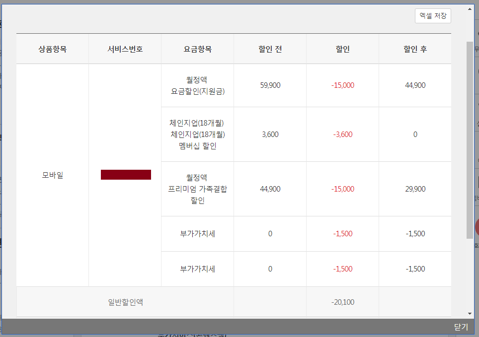 앞서 말씀드렸다시피 1회선은 베이스로 총액결합할인을,