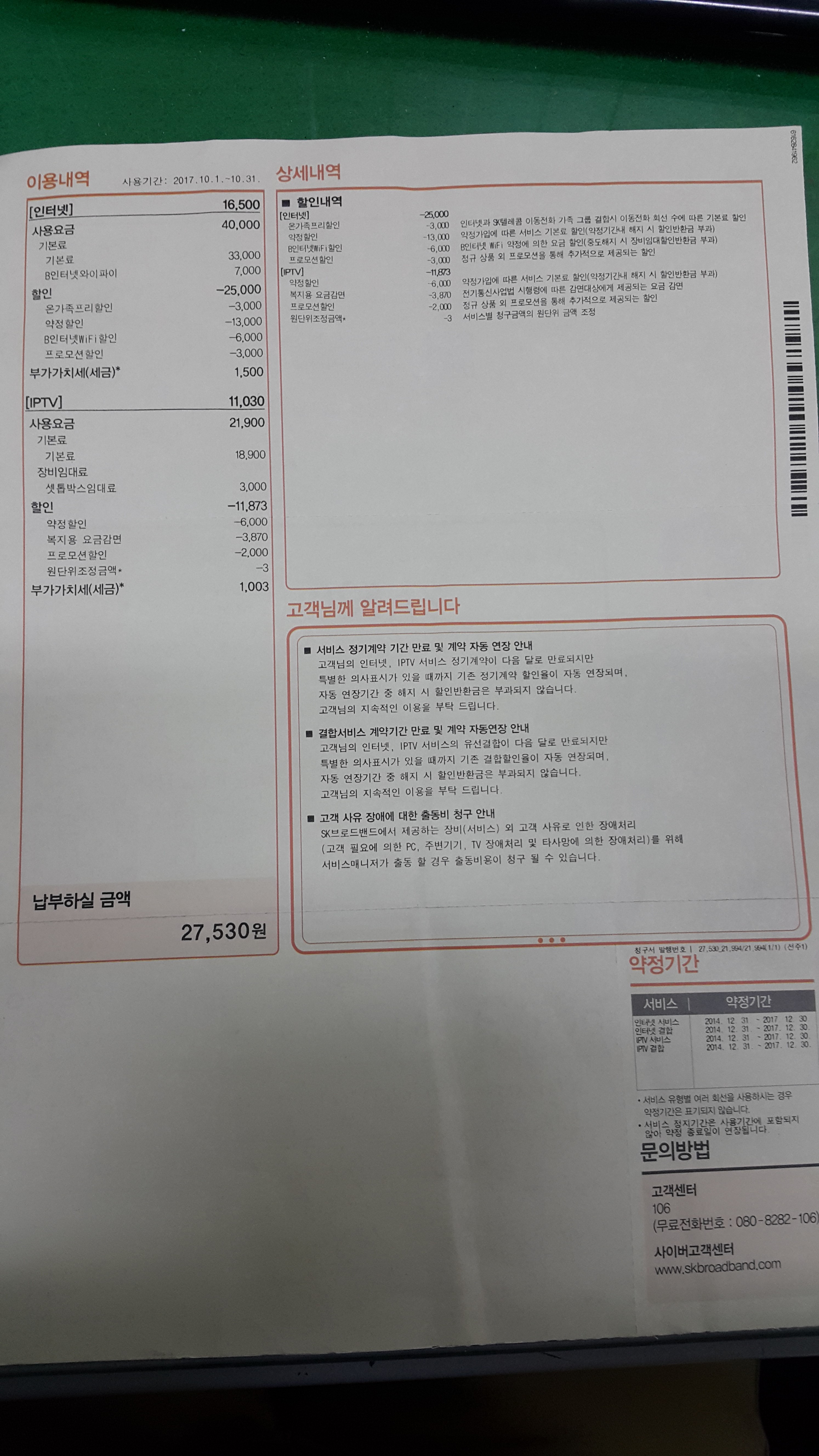 1) 현재 사용하고 있는 인터넷 통신사와 남아있는 약정기간