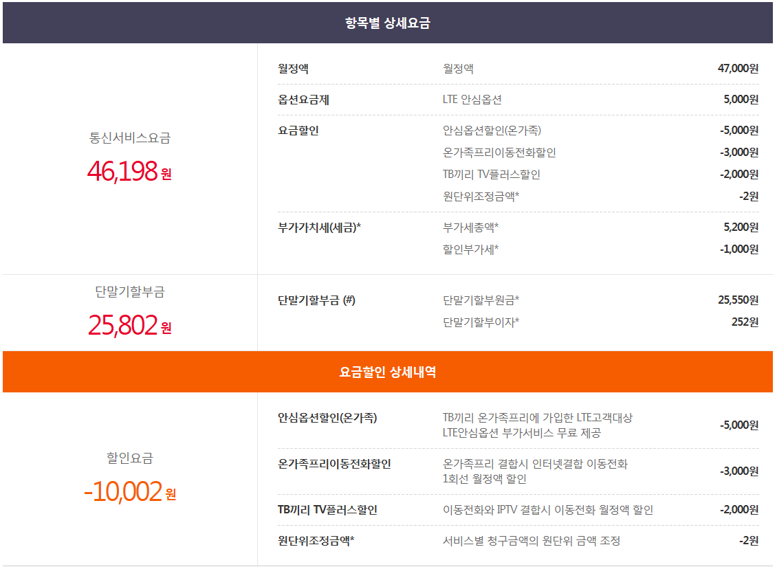 다만, "LTE안심옵션(월 5,500원)" 혜택이 꼭 필요하시다면