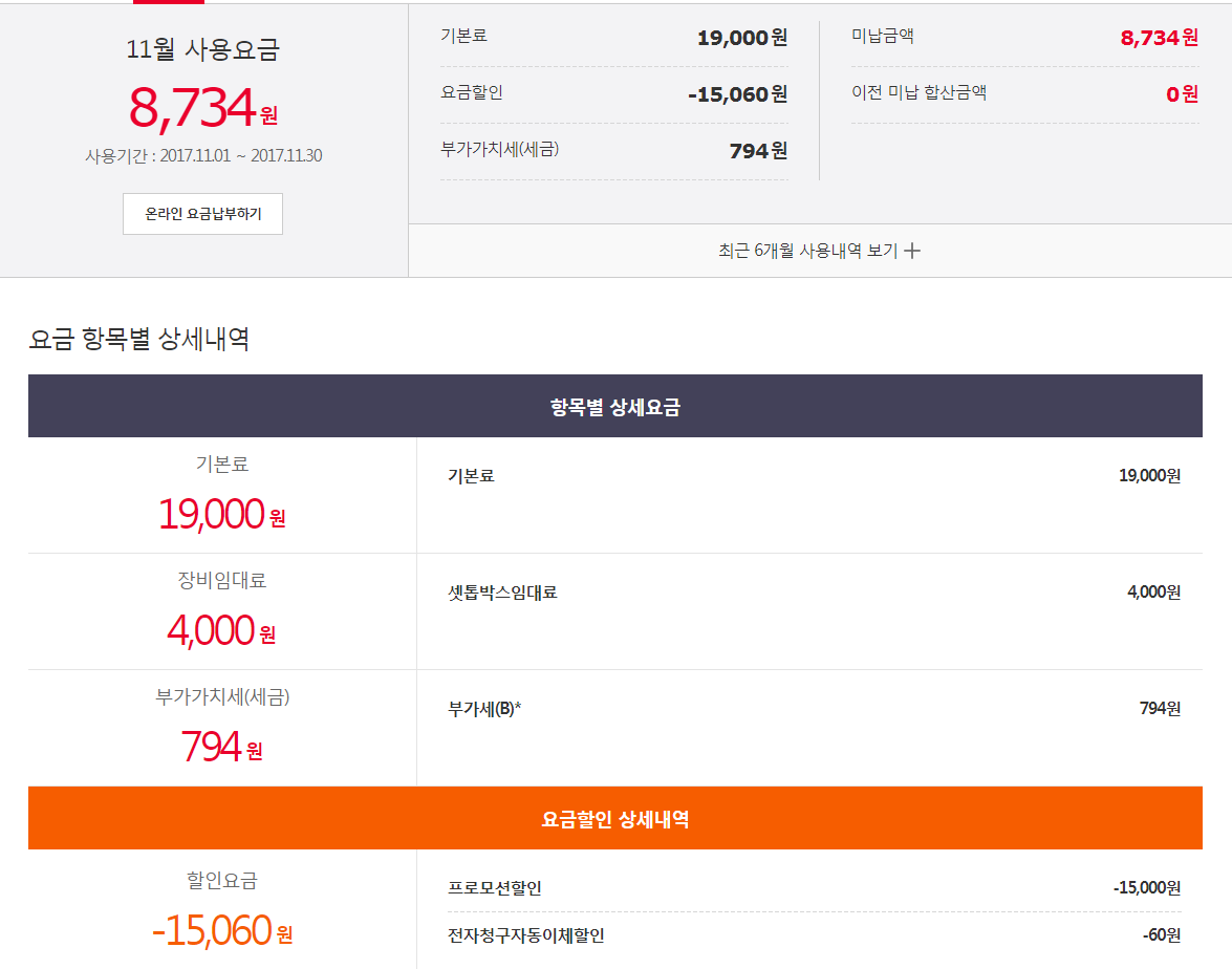 2) 그리고 TV요금에 "프로모션할인" 들어가있는데