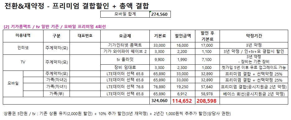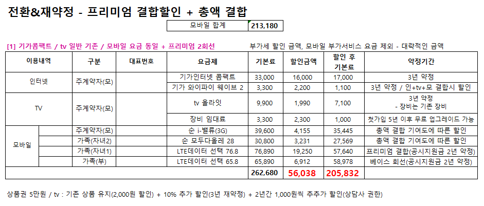 2) 결합 상품 전환 & 재약정 - 프리미얼 결합할인 + 총액 결합 (1)