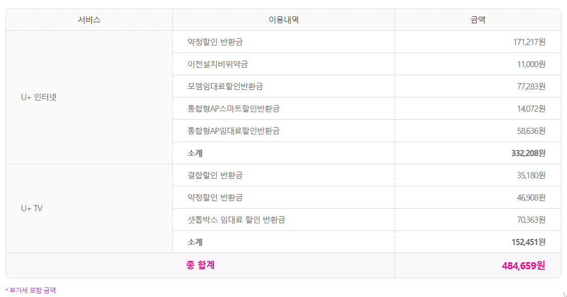 위약금 내역도 살펴봤는데