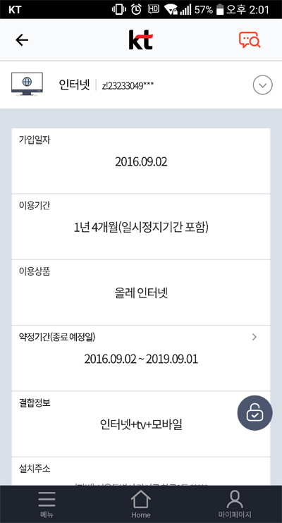 인터넷뭉치면올레 결합상품을 쓰고 있는데
