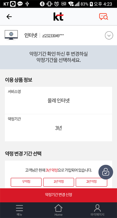 요금은 3년약정 기준으로 나가고 있는게 맞는지 확인해주세요~"