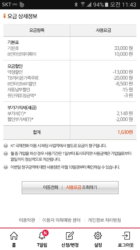 4) 현재 납부중인 SK 인터넷 요금이 살~짝 요상(?)한 듯 하니,