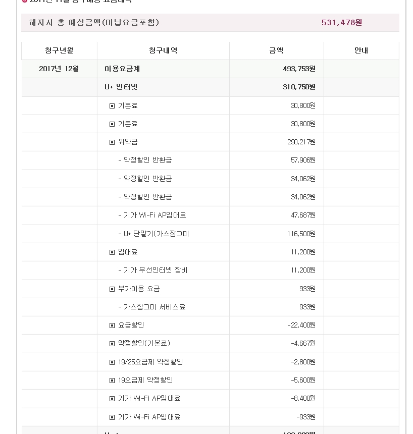 해지후 다른 상품으로 가입하려고 하는데 위약금이  인터넷 + tv + 와이파이 + 가스락 등등으로  위에 첨부 사진과 같이
